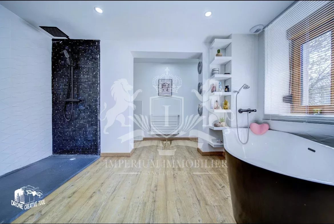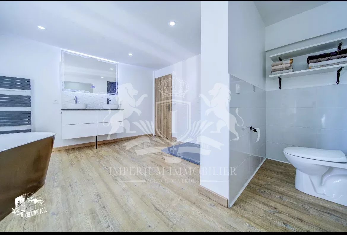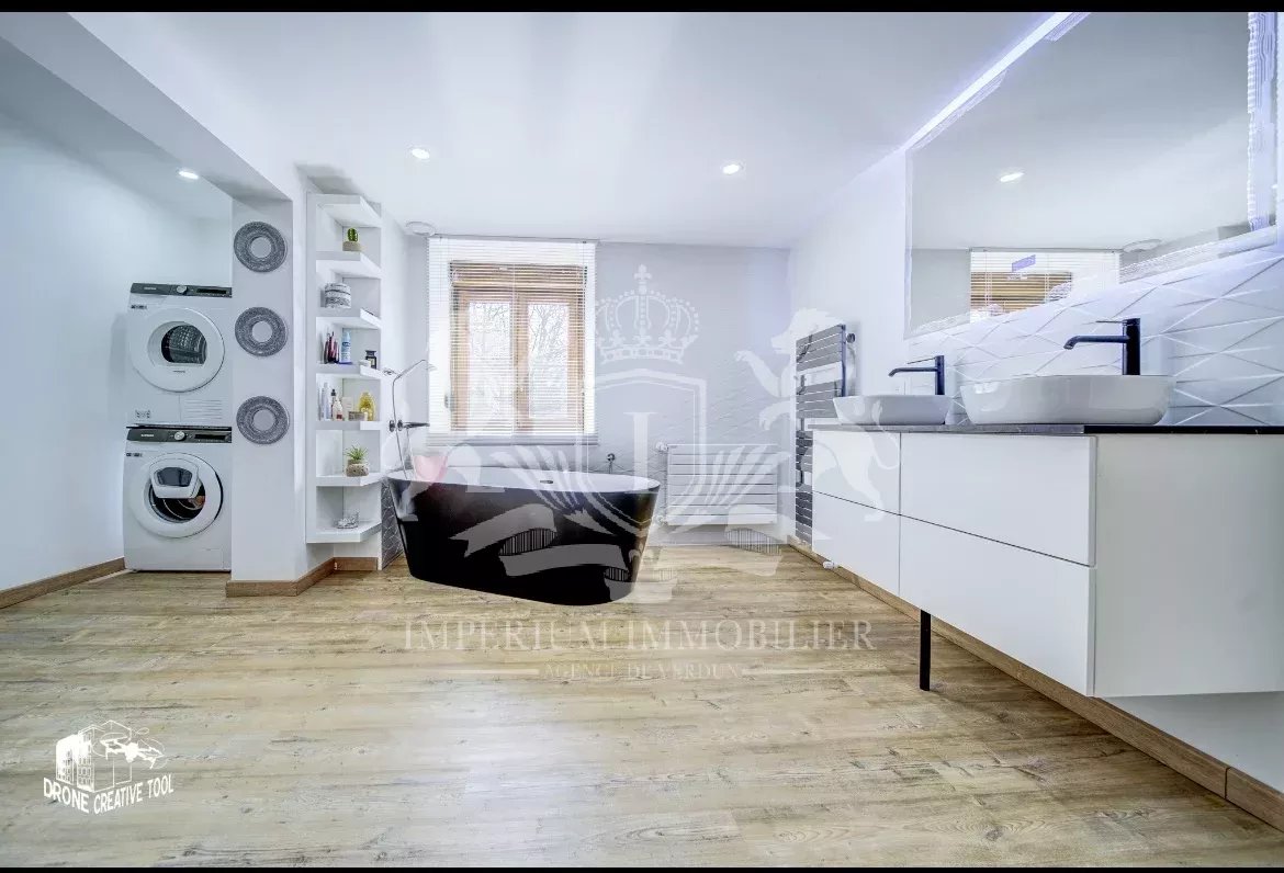 • L'Unique Salle de Bain : Située à l'étage, elle offre un espace bien-être moderne comprenant une douche, une baignoire, un WC (2/2 WC total), un meuble avec double vasque et un miroir connecté !